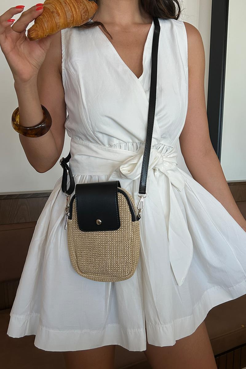 Vexa Hasır Görünümlü Çapraz Çanta Siyah