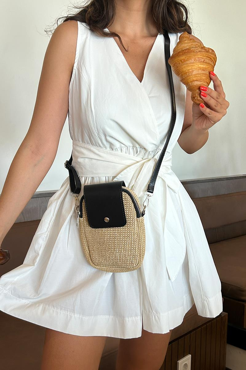 Vexa Hasır Görünümlü Çapraz Çanta Siyah (shule008397)