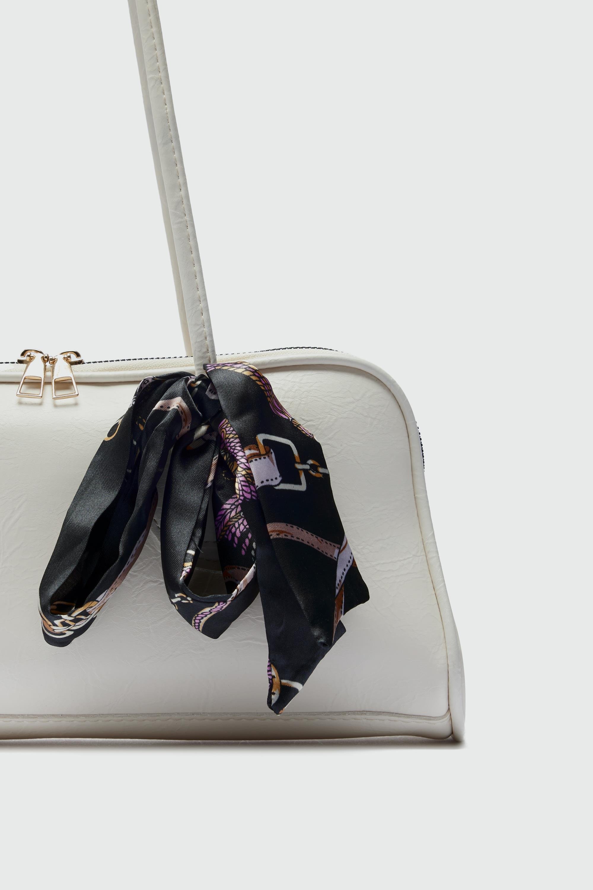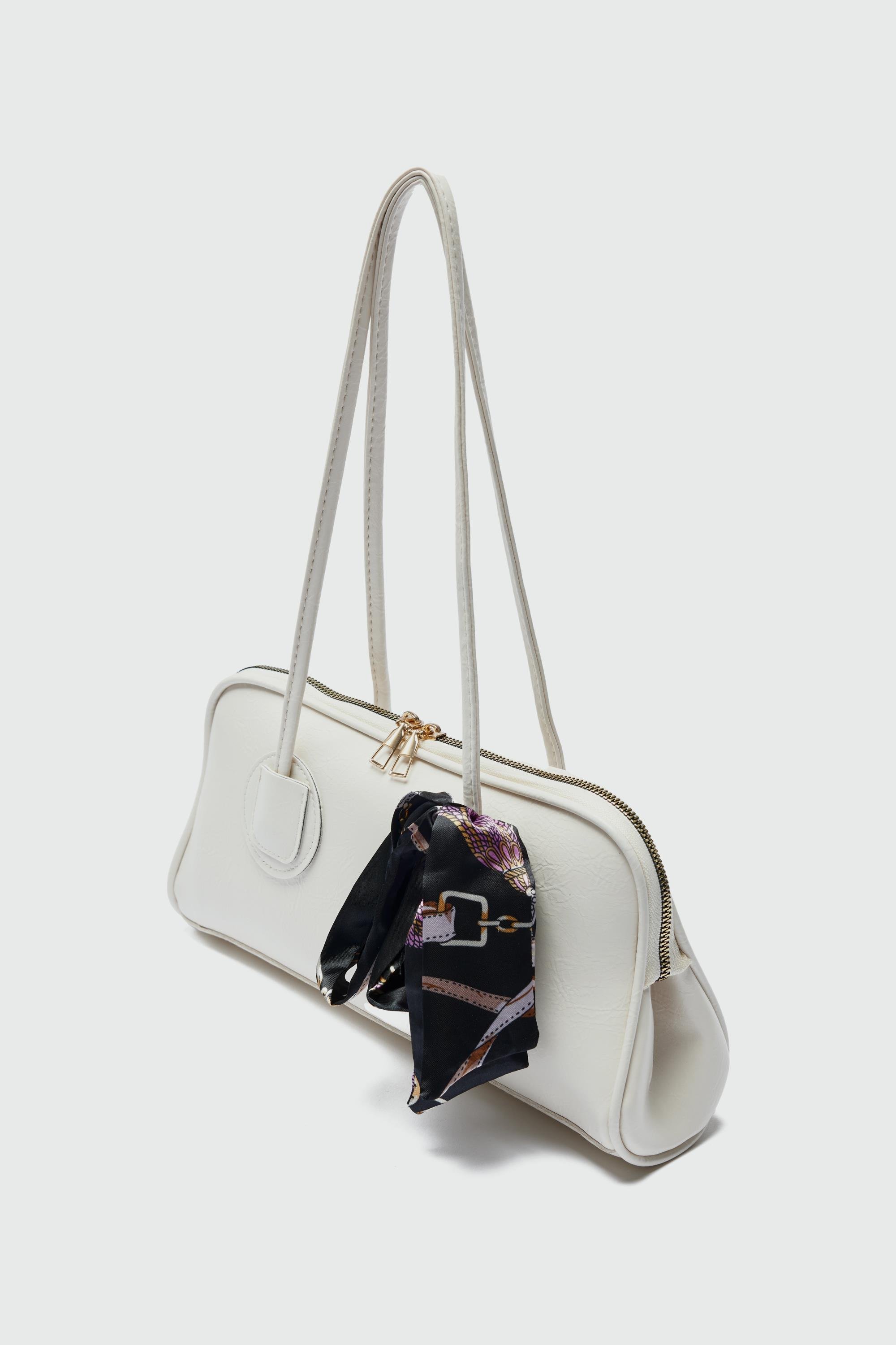 Vita Fular Detaylı Baget Çanta  Siyah Vita Fular Detaylı  Baget Çanta Krem Vita Fular Detaylı  Baget Çanta Beyaz