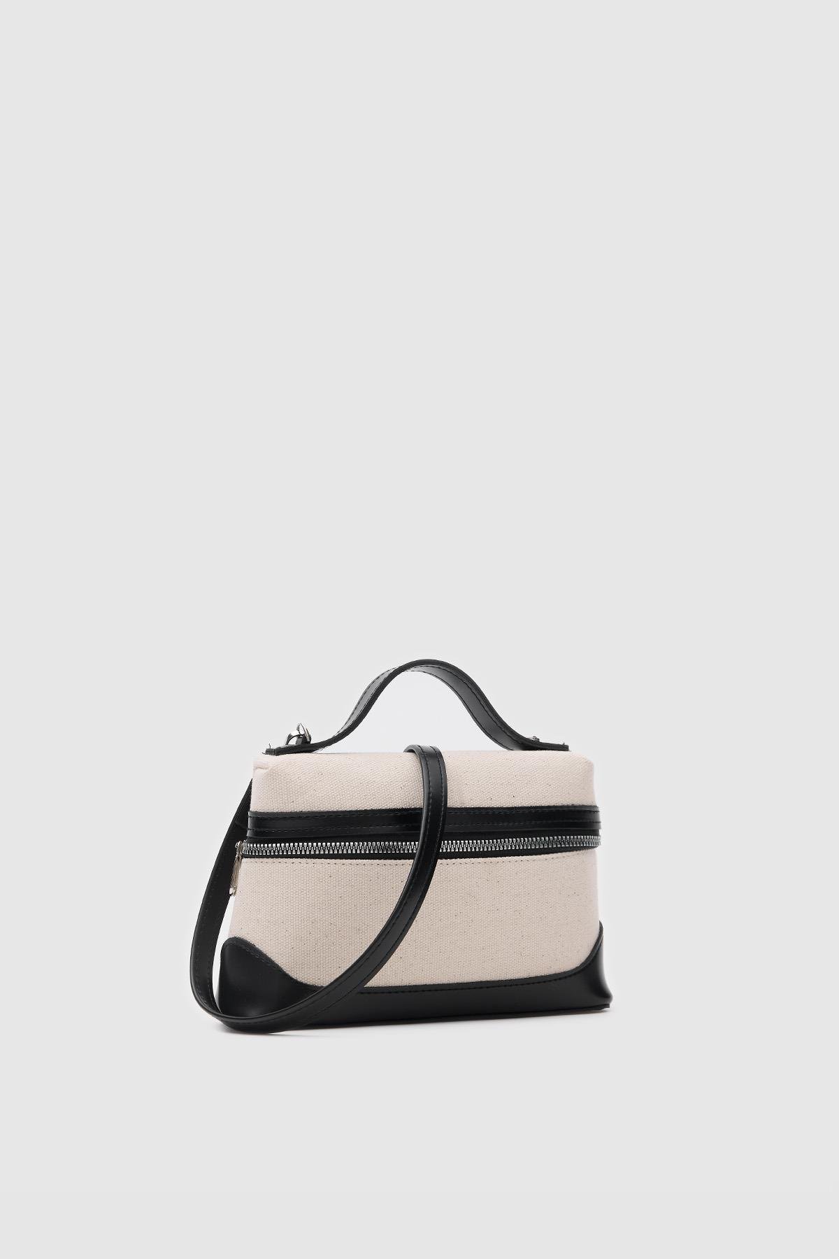 Yoko Box Bag El ve Çapraz Omuz Çanta Krem-Siyah