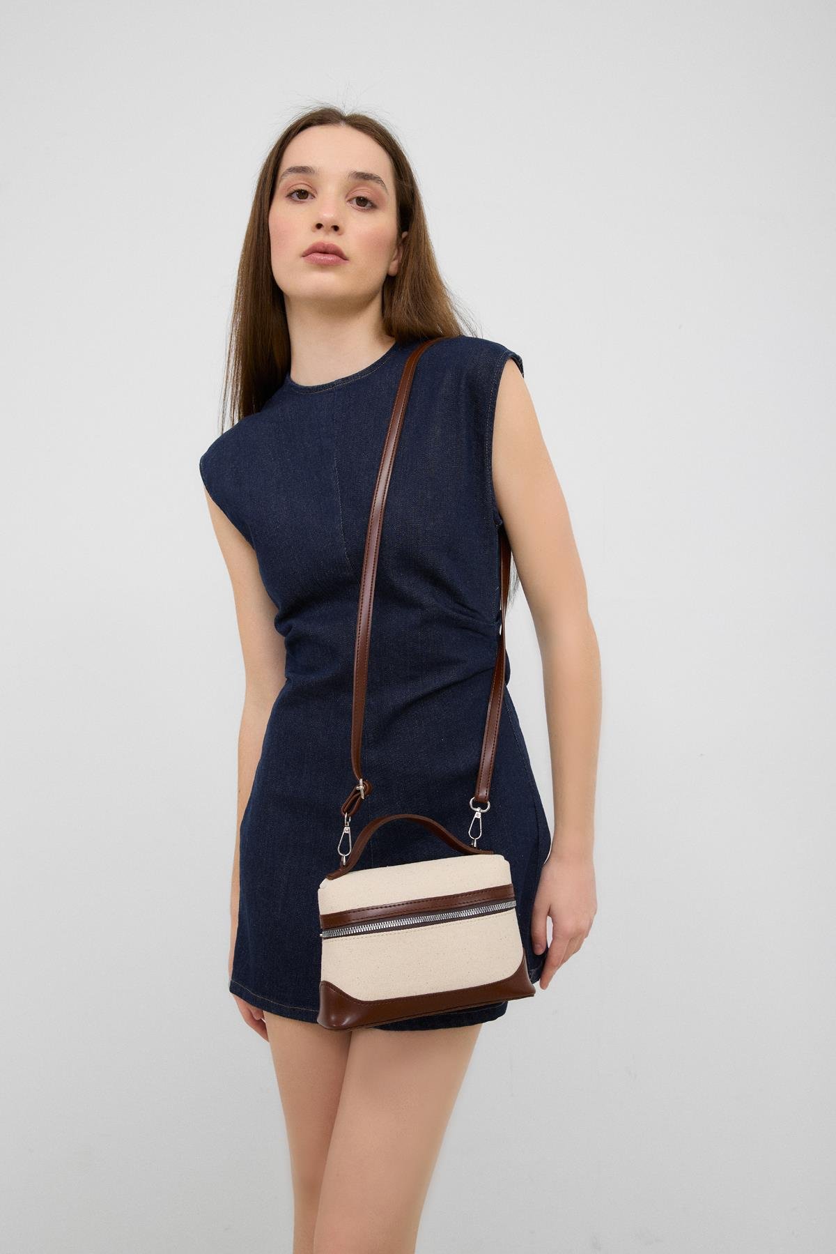 Yoko Box Bag El ve Çapraz Omuz Çanta Krem-Taba