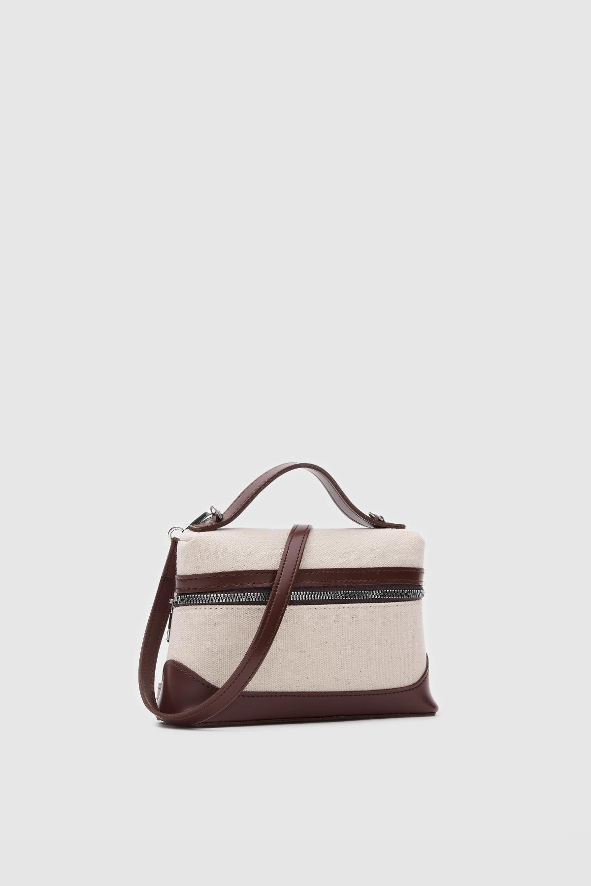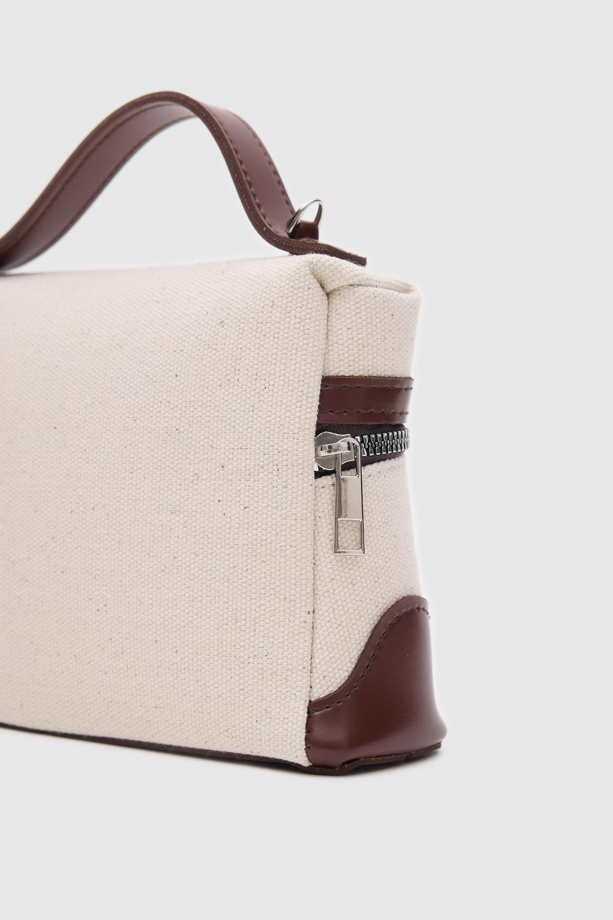 Yoko Box Bag El ve Çapraz Omuz Çanta Krem-Taba (shule008371)