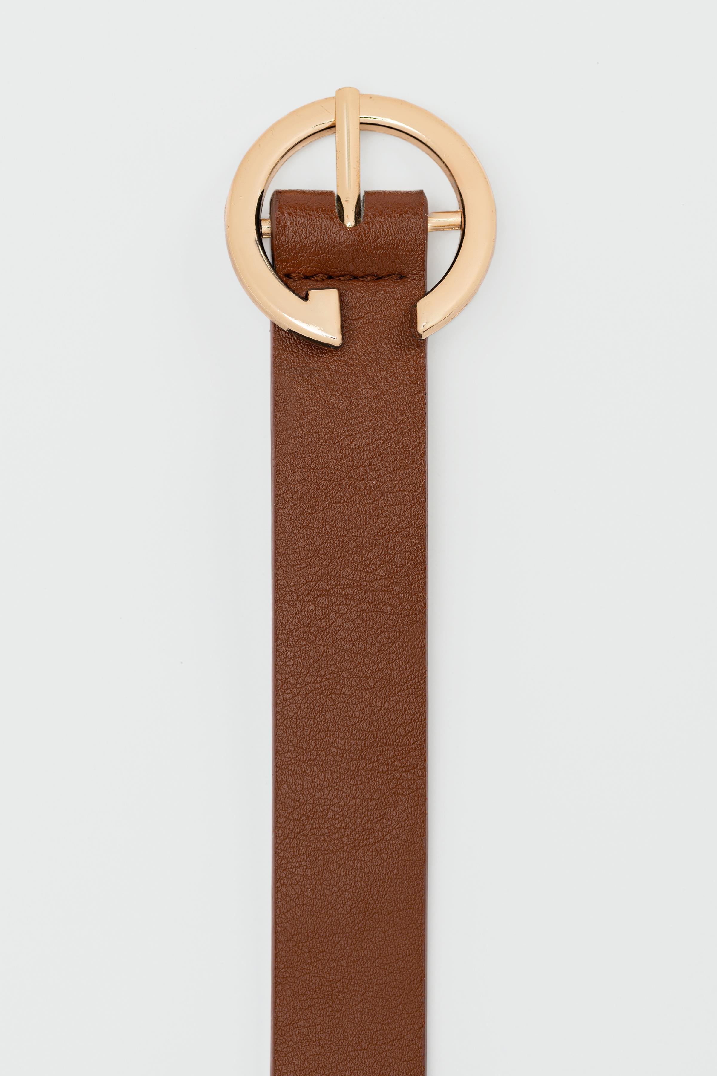 Yuvarlak Tokalı Suni Deri Kemer Kahve
