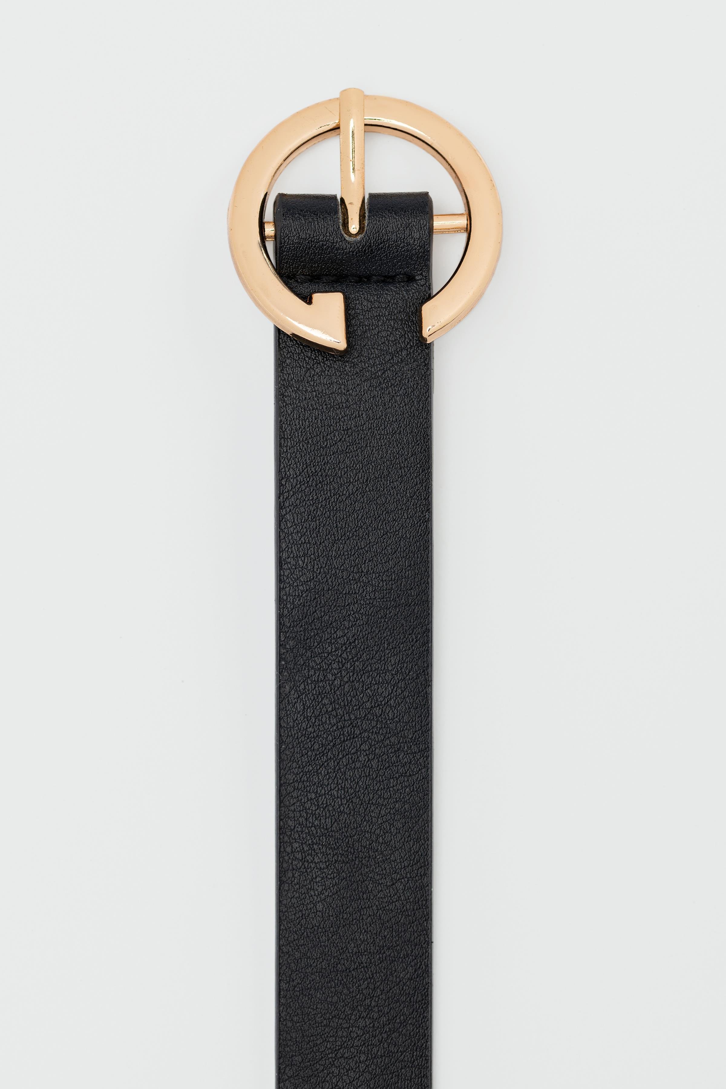 Yuvarlak Tokalı Suni Deri Kemer Siyah