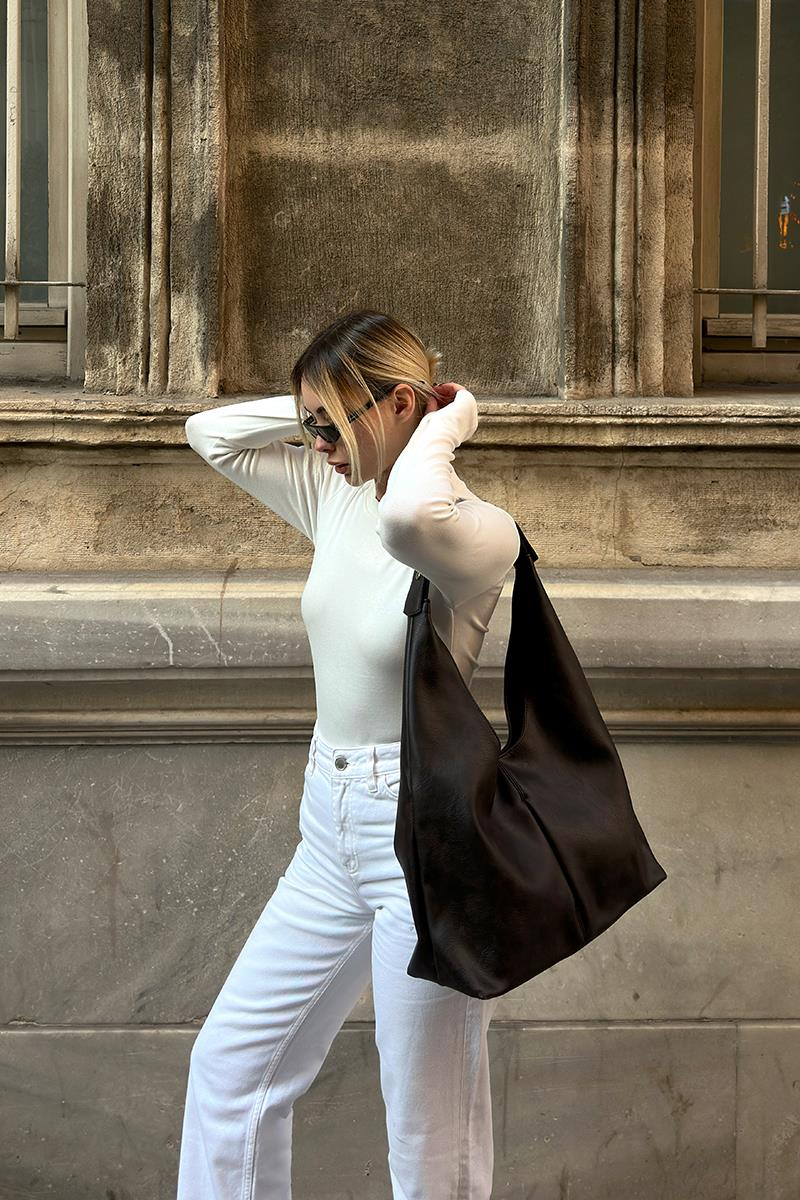 Zaura Nubuk Salaş Omuz Çantası Acı Kahve