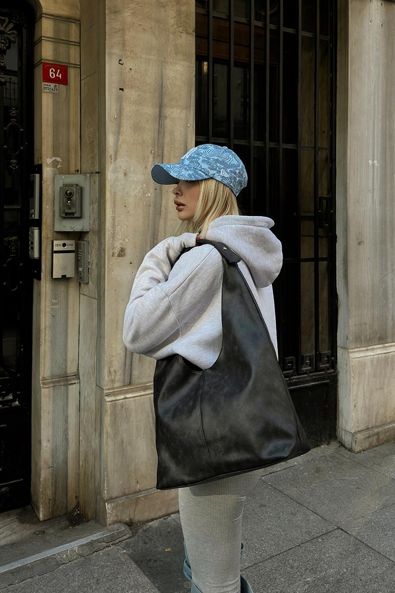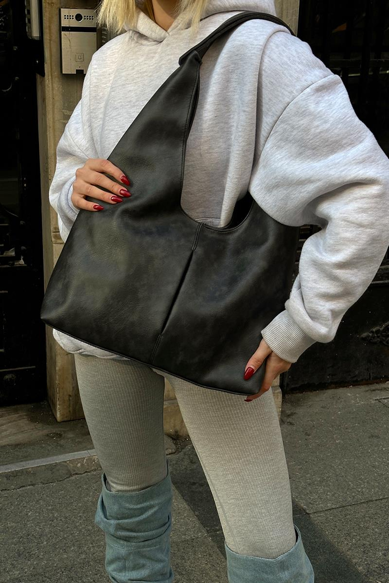 Zaura Nubuk Salaş Omuz Çantası Siyah (shule008279)