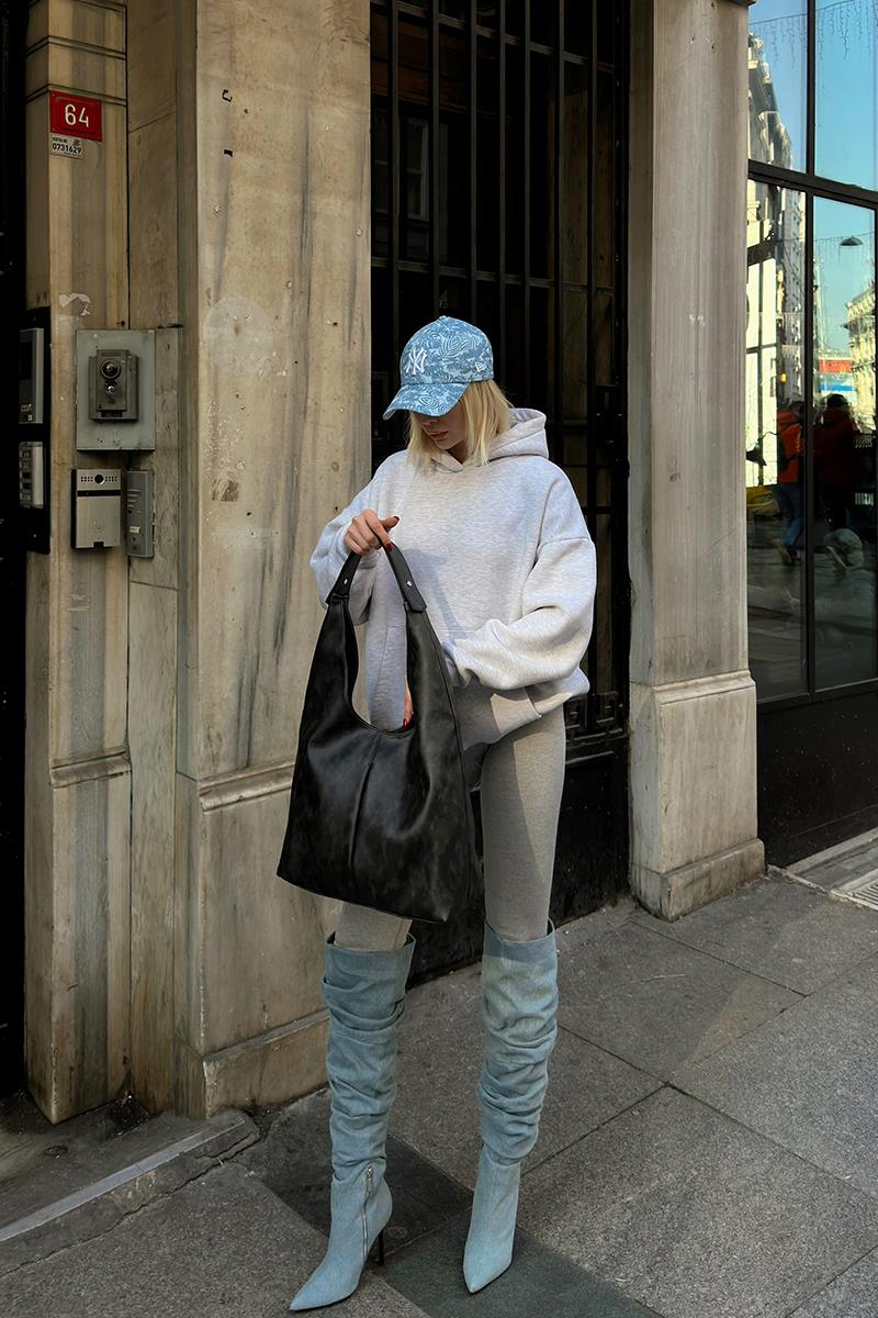 Zaura Nubuk Salaş Omuz Çantası Siyah