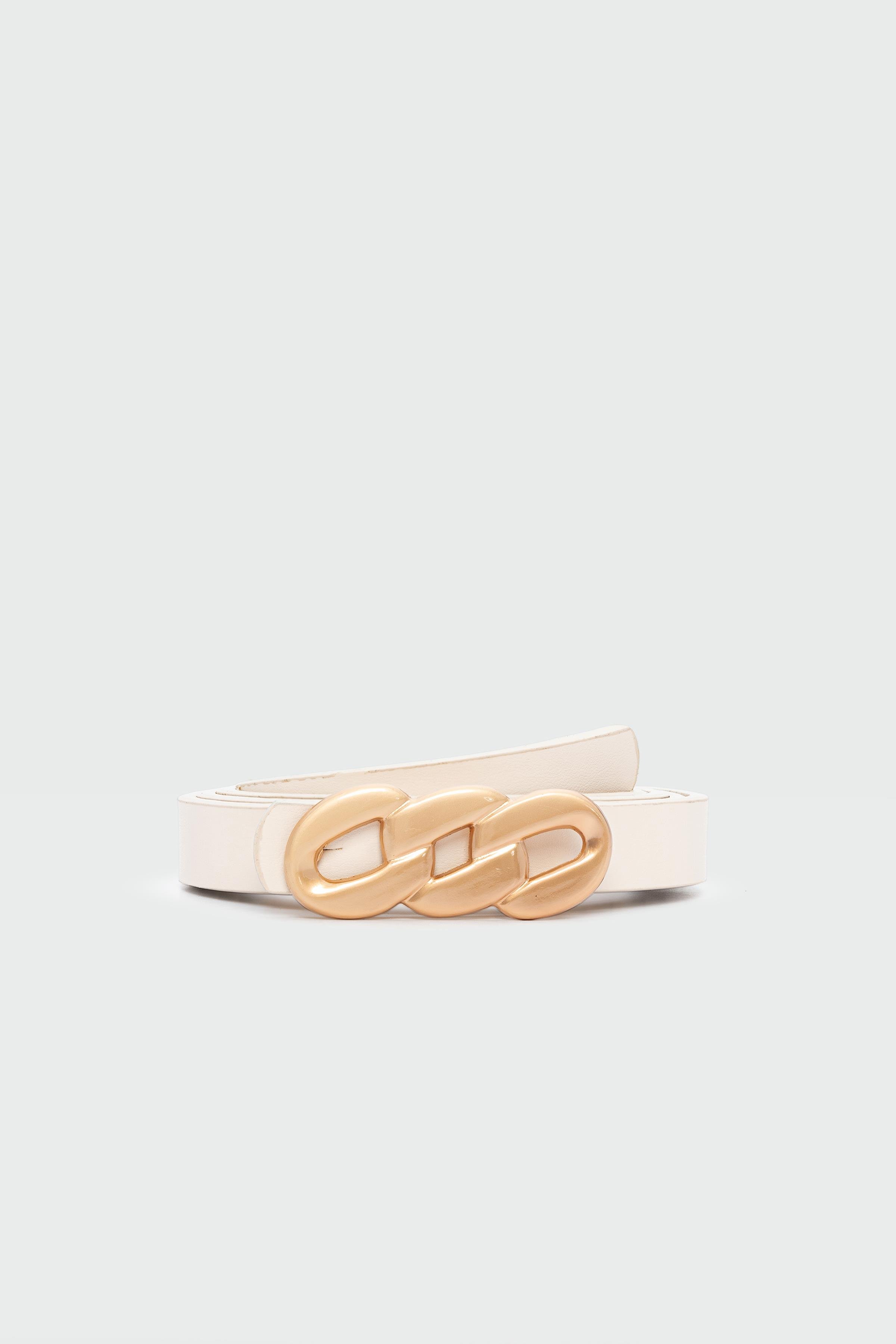 Zincir Görünüm Tokalı Suni Deri İnce Kemer Krem (shule008422)