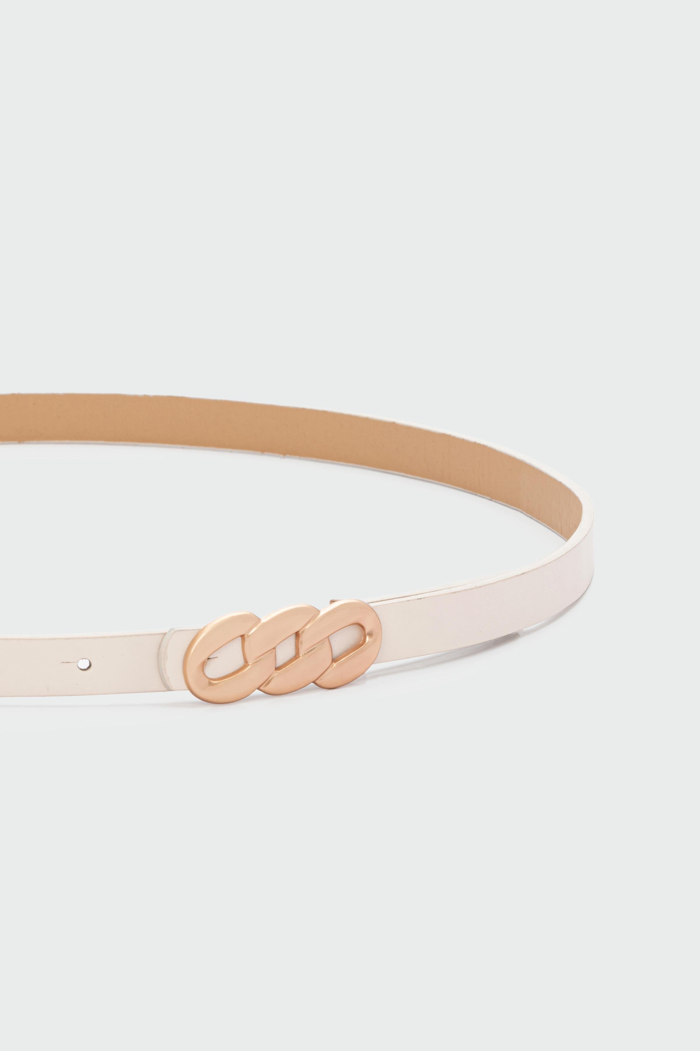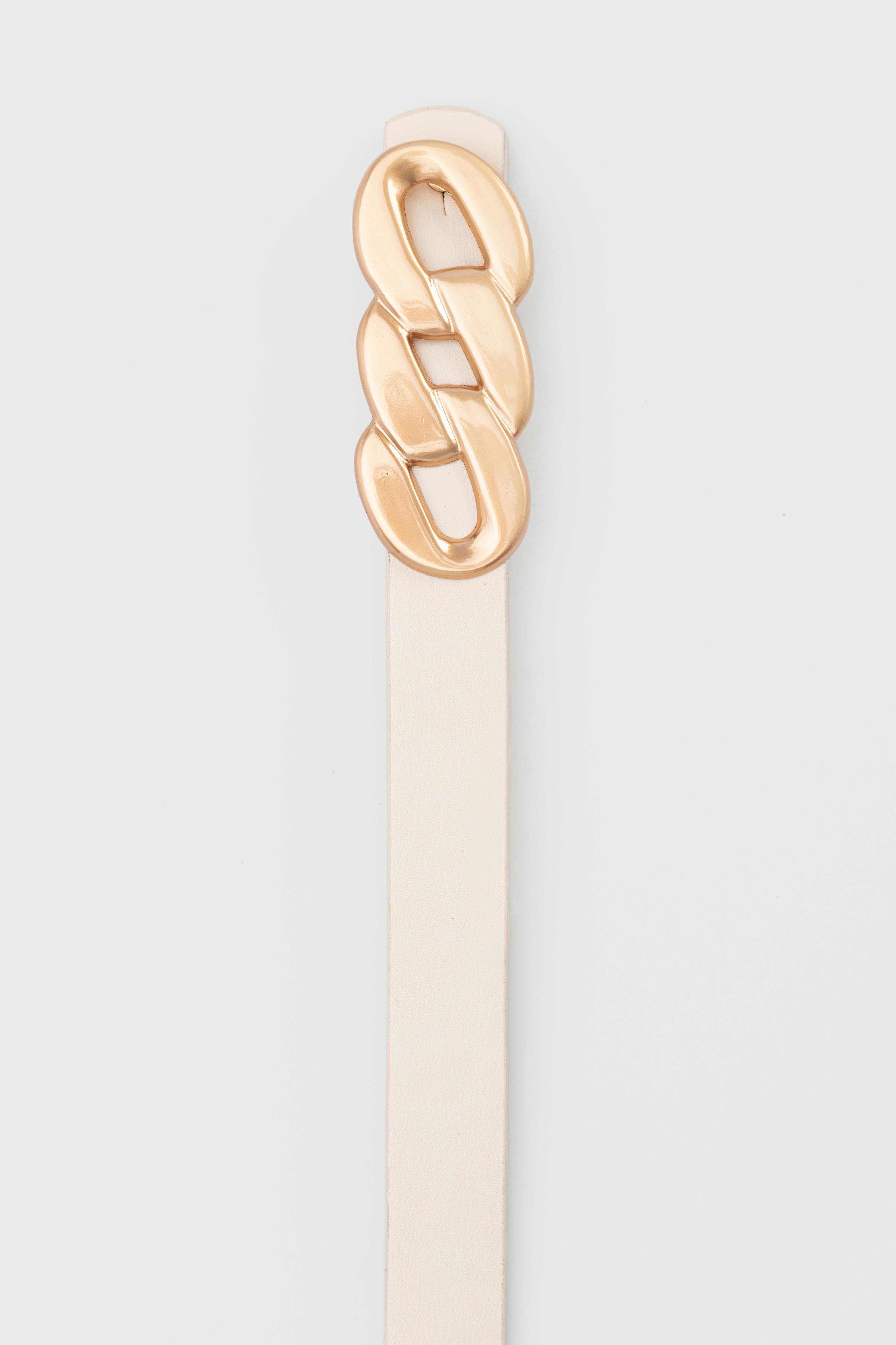 Zincir Görünüm Tokalı Suni Deri İnce Kemer Krem